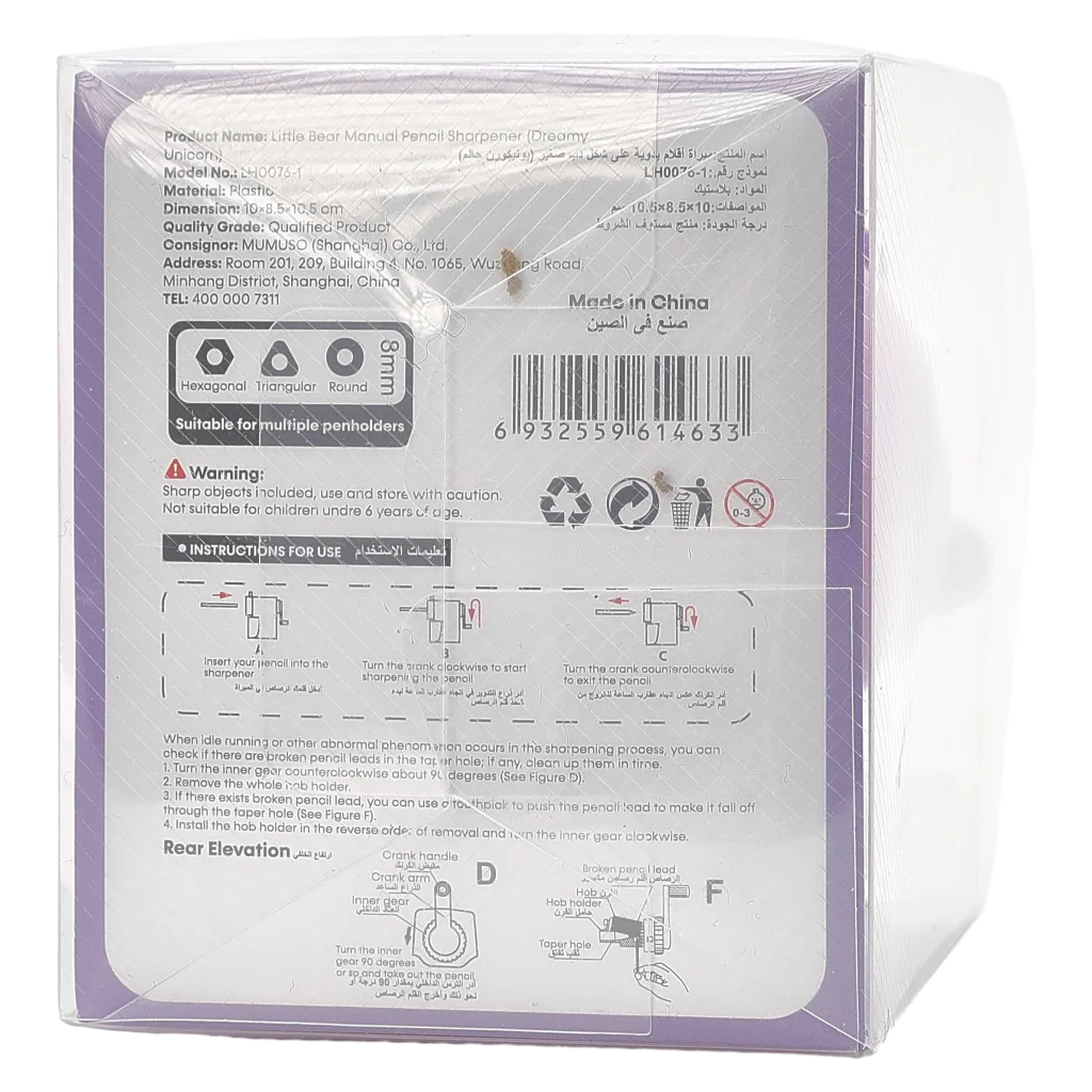 Manueller Bleistiftspitzer in Bärenform mit Einhorn-Design, ideal für Kinder und kreative Schreibtischhelden. Das stabile Gehäuse sorgt für sicheres und einfaches Spitzen. Perfekt für Schule, Büro oder Zuhause mit praktischem Auffangbehälter.