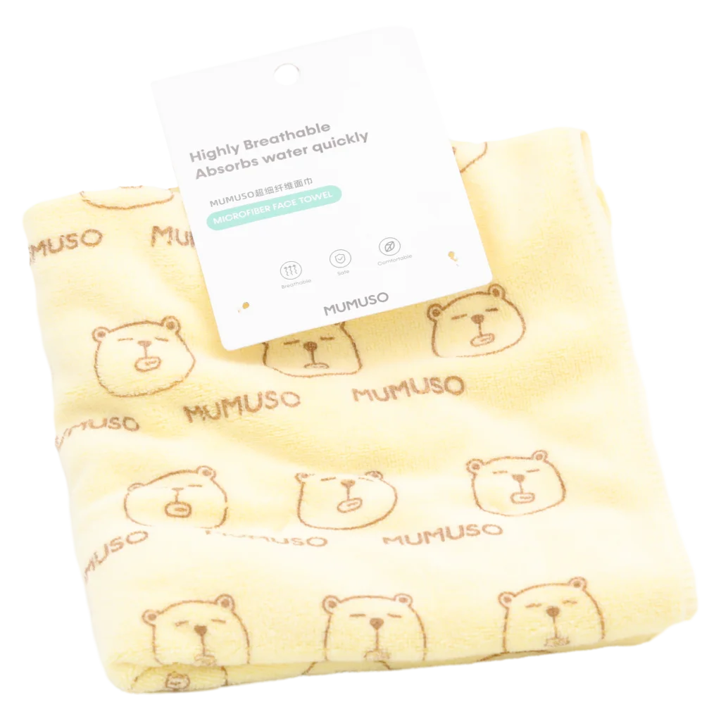 - Mikrofaser-Gesichtshandtuch aus Polyester/Polyamid-Mischfaser mit Bären-Design (Gelb)