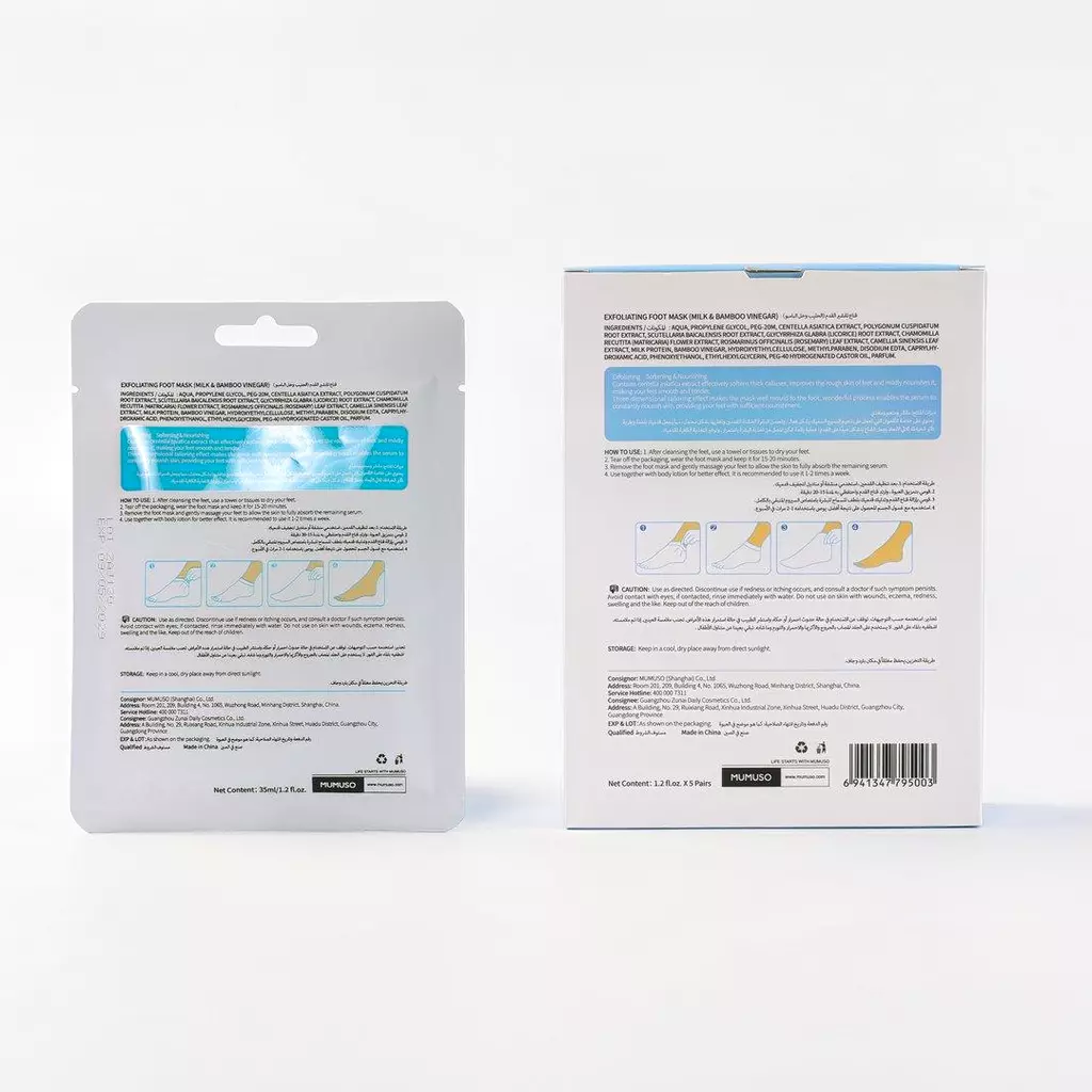 Die Milch & Bambusessig Fußmaske bietet eine intensive Peeling-Pflege, die abgestorbene Haut sanft entfernt und die Füße mit Feuchtigkeit versorgt. Ideal geeignet für alle, die ihre Füße verwöhnen und pflegen möchten.