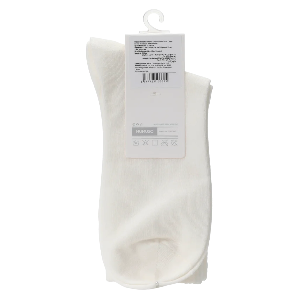 Mini Crew Socken Herren Baumwollmischung mit Happy-Print (Weiß)