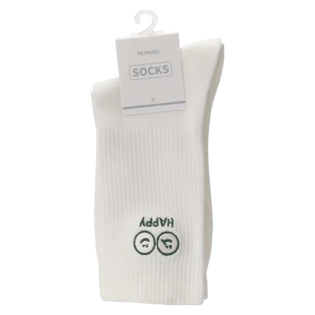 Dezentes Design: Der kleine Happy-Print verleiht den schlichten Socken eine persönliche Note.