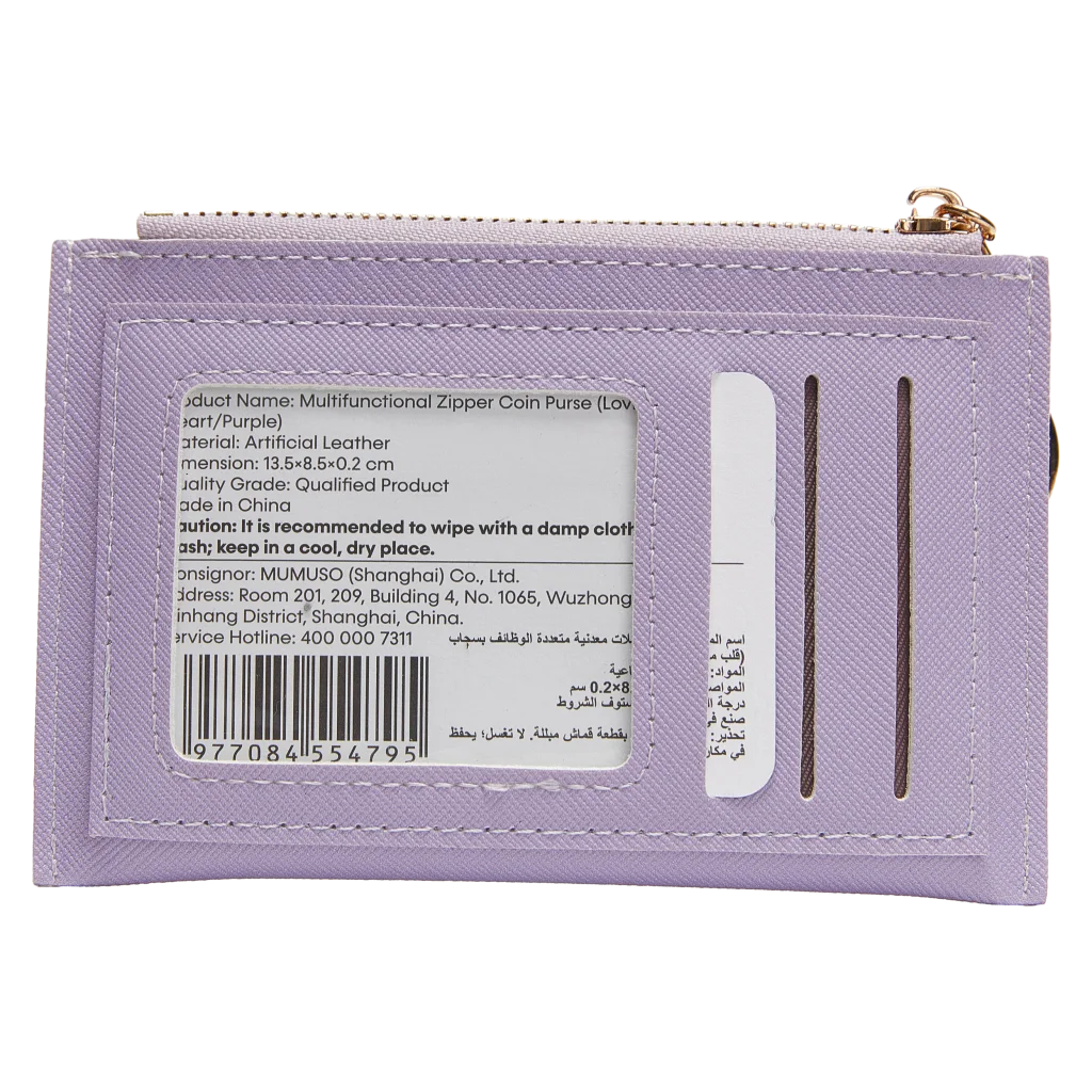Gefertigt aus strapazierfähigem Kunstleder, punktet das Portemonnaie mit einem auffälligen, liebevollen Herz-Design und sanften Farbverläufen in Lila, Rosa und Gelb. Der stabile Reißverschluss und der praktische Schlüsselring erhöhen die Alltagstauglichkeit.
