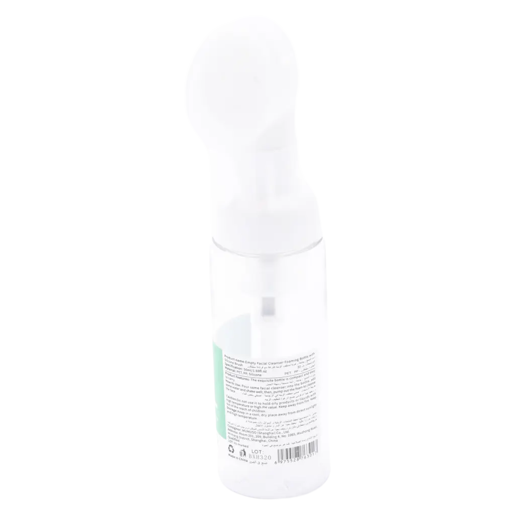 Diese handliche Schaumspender-Flasche mit angeschlossener Silikonbürste eignet sich perfekt für die tägliche Gesichtsreinigung und ist auch auf Reisen ein hilfreicher Begleiter. Sie lässt sich mit dem Lieblingsreiniger befüllen und sorgt für einen angenehmen Reinigungsschaum.