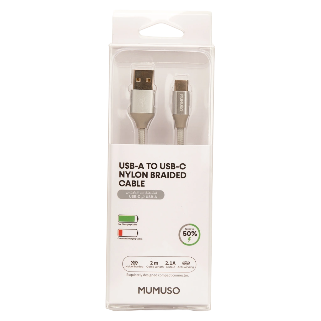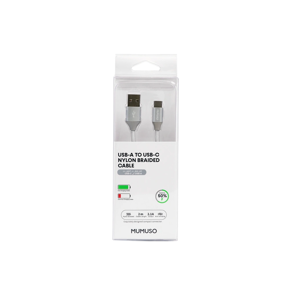 - Nylon-geflochtenes USB-A auf USB-C Ladekabel, 2 m (Silber)