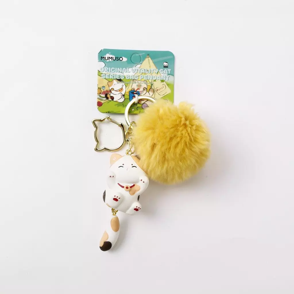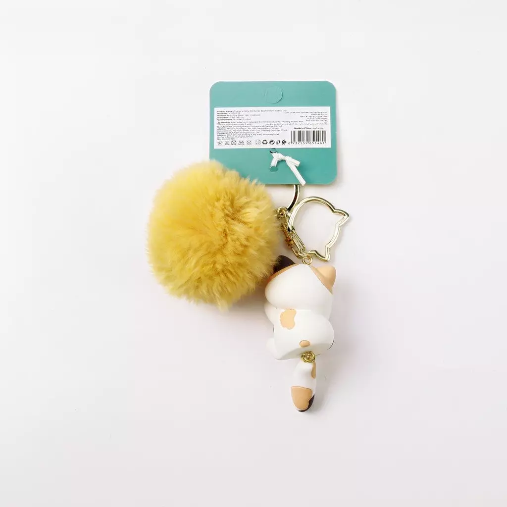 - Originales Anhänger-Set mit Calico-Katze und Pom-Pom (Gelb)