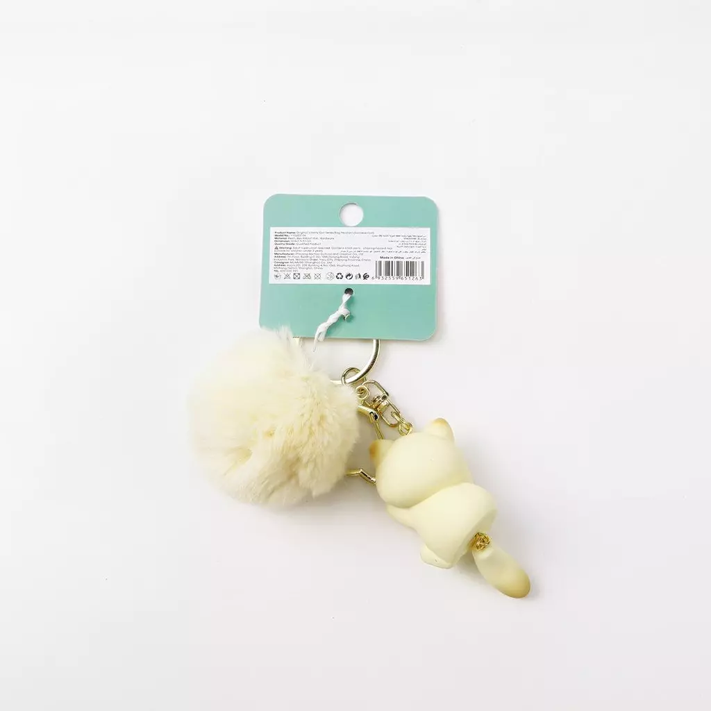 Der Anhänger besteht aus einem weichen, elastischen Material und ist mit einem flauschigen Pompon kombiniert. Die süße Katzenfigur in sanften Farben sorgt für einen ansprechenden Look und ist ein echter Hingucker.