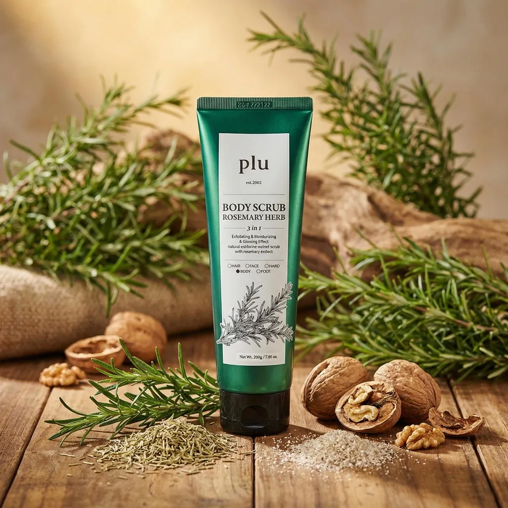 Der plu Body Scrub Rosemary Herb bietet eine gründliche, aber sanfte Exfoliation, die die Haut erfrischt und revitalisiert. Besonders geeignet für die Anwendung vor dem Auftragen von Feuchtigkeitscremes, um die Aufnahme zu verbessern. Ideal für die tägliche Anwendung oder als Teil eines wöchentlichen Pflegeprogramms.
