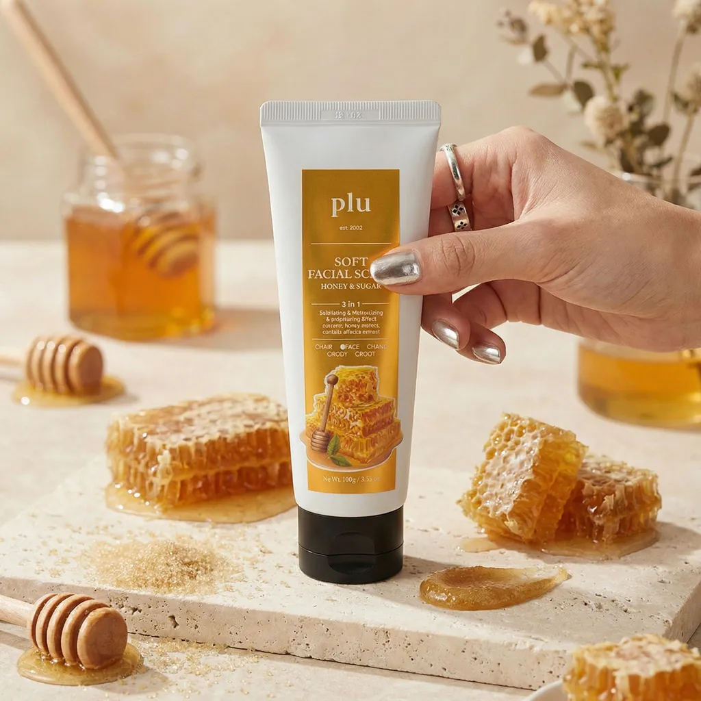 Der plu Soft Facial Scrub Honey & Sugar ist ein sanftes Peeling für die Gesichtshaut. Es entfernt abgestorbene Hautzellen und sorgt für ein frisches Hautbild. Ideal für alle Hauttypen.