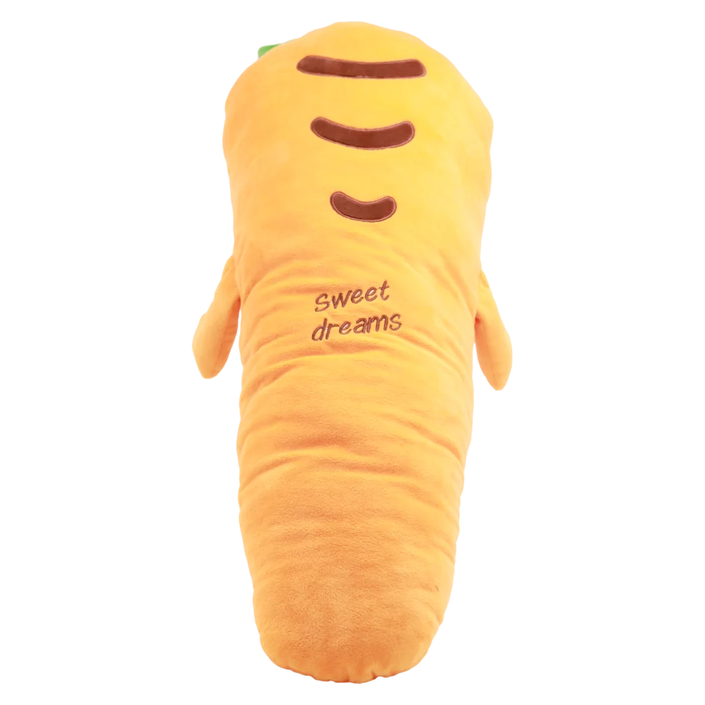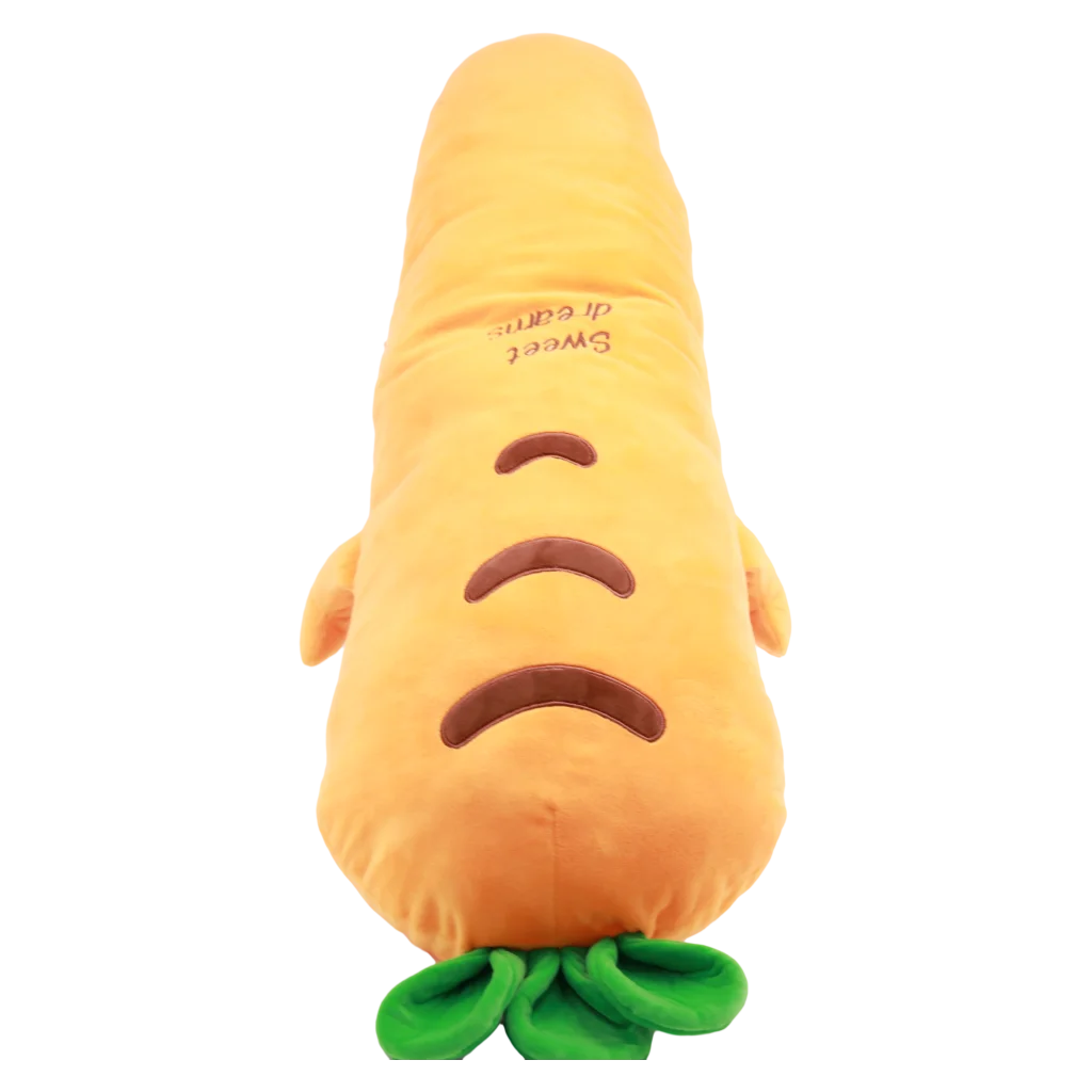 Das Kuschelkissen in Karotten-Design ist 90 cm lang und eignet sich ideal für Kinderzimmer oder zum Entspannen im Wohnbereich. Der weiche Plüsch sorgt für angenehmen Komfort beim Spielen oder Ausruhen. Perfekt als dekoratives Kuscheltier oder bequemes Spezialkissen.