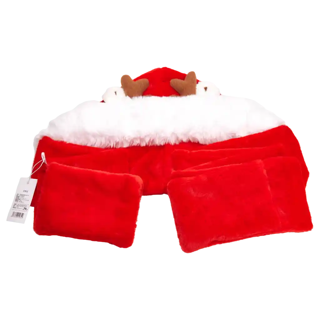 Gefertigt aus weichem Plüschmaterial, überzeugt die Schal-Mütze in einem kräftigen Rotton mit weißen und braunen Akzenten. Die typischen Geweih-Elemente ergänzen das Rentier-Design und sorgen für einen verspielten Look, der insbesondere zur Winter- und Weihnachtszeit begeistert.