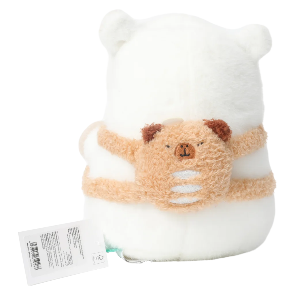 Das Plüschtier überzeugt mit einem weichen, weißen Fell und dezenten braunen Details. Gefertigt aus 100% Polyester, bleibt es auch nach wiederholtem Kuscheln angenehm weich und formstabil. Das Rucksack-Design an der Rückseite setzt einen charmanten Akzent.