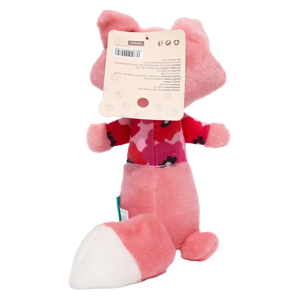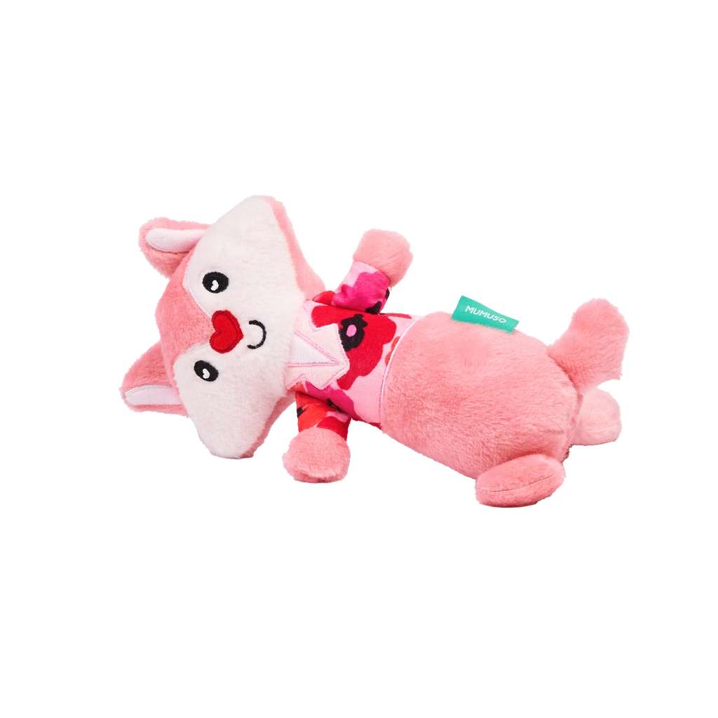 Das Plüschtier überzeugt durch eine samtig-weiche Oberfläche in Rosa mit roten Akzenten und dem niedlichen Fuchs-Print. Die sorgfältige Verarbeitung macht es besonders kuschelig und schont das Maul Ihres Vierbeiners beim Spielen.
