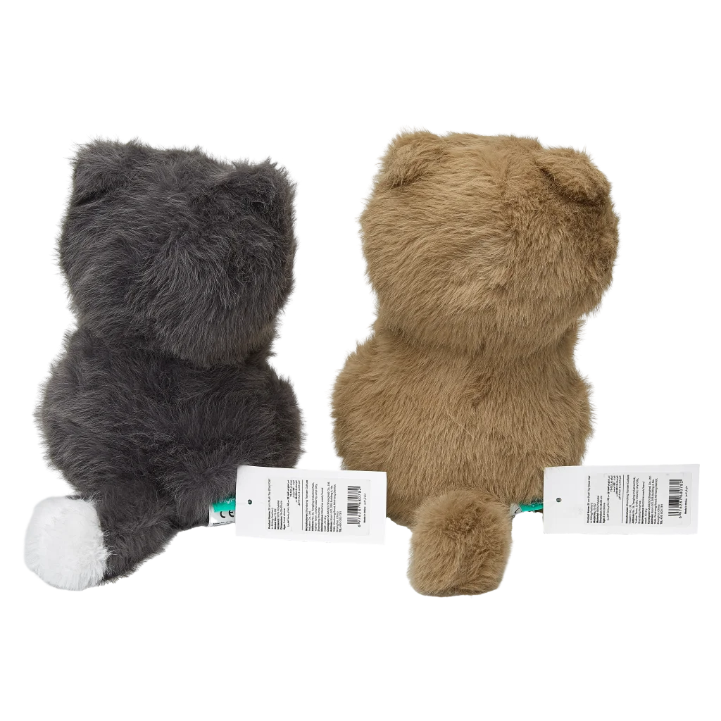 Gefertigt aus weichem Polyester überzeugt die Plüschkatze durch ein detailreiches und kinderfreundliches Design. Sie ist erhältlich in zwei Farbvarianten (Grau/Braun) und begeistert durch ihre flauschige Oberfläche sowie charmante Optik.