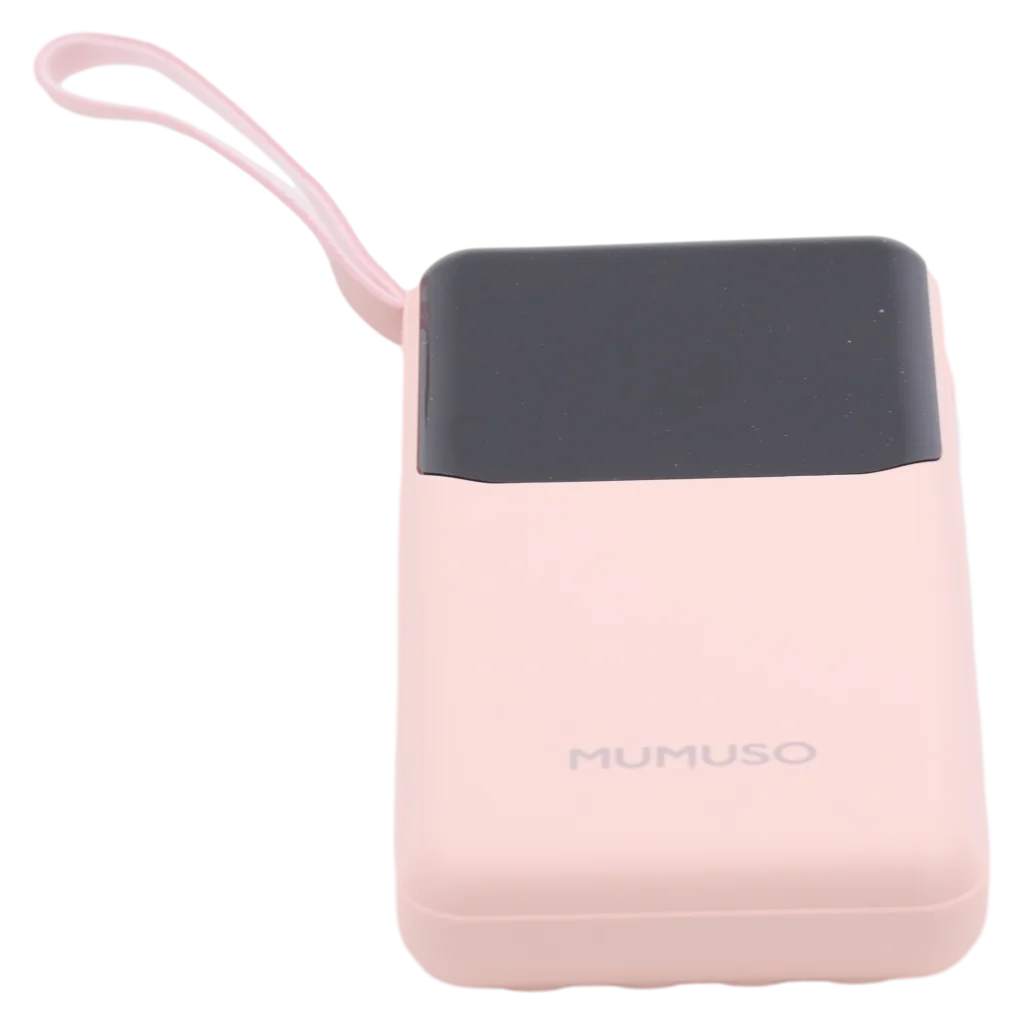 Diese tragbare Powerbank aus Kunststoff bietet 10.000 mAh Kapazität und integrierte Kabel, ideal für Smartphones und andere Geräte unterwegs. Das handliche Design in Rosa ermöglicht einfaches Laden ohne zusätzliches Zubehör.