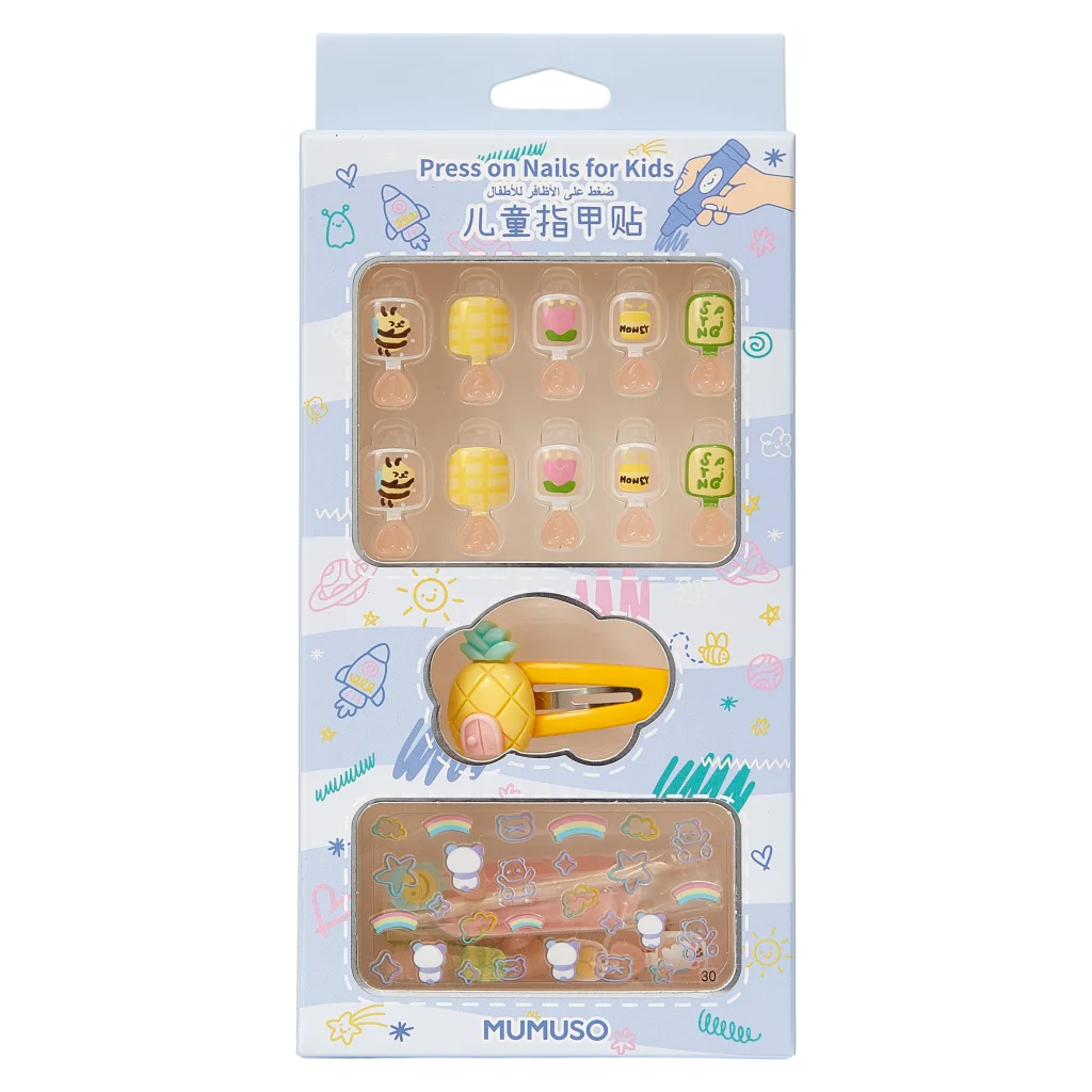 Press-On Nägel aus ABS-Kunststoff für Kinder mit Bienen- und Honig-Design, inklusive Haarclip (Mehrfarbig)