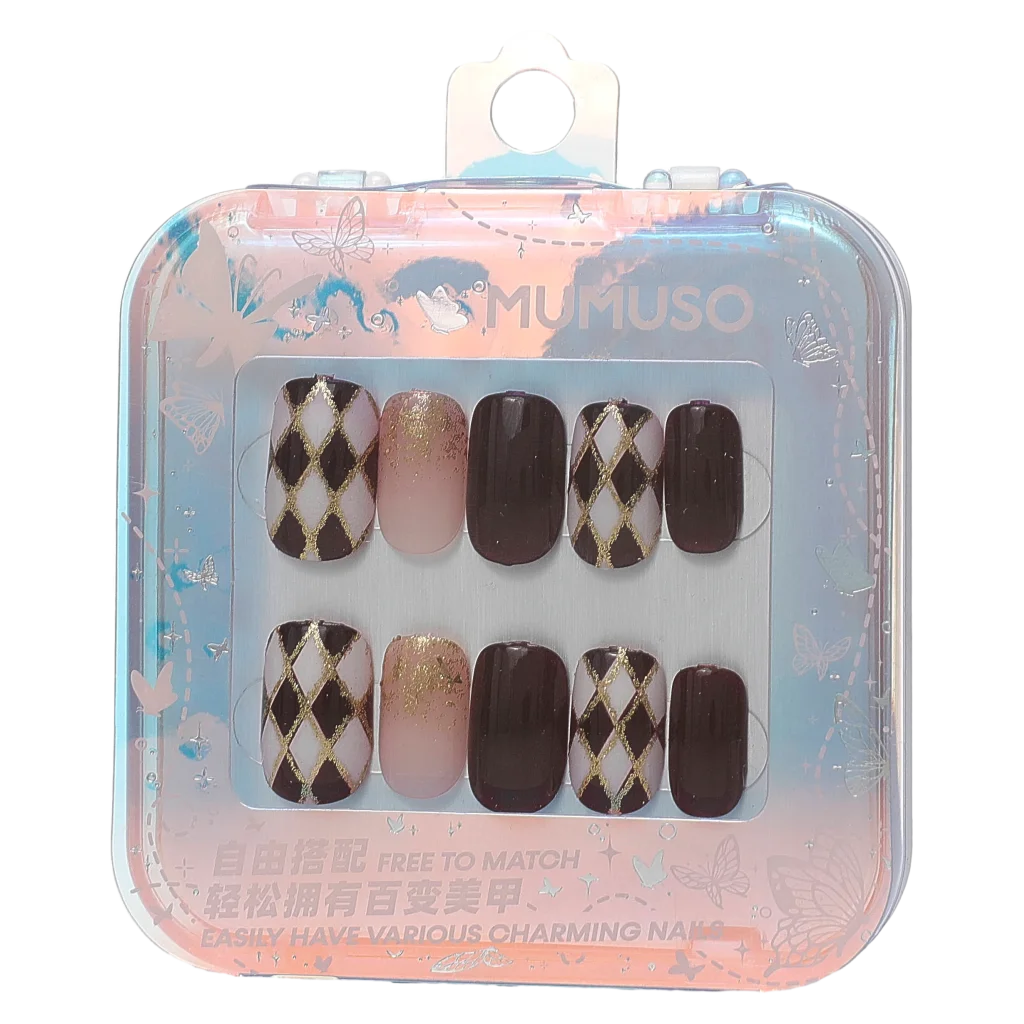 Press-On-Nails Set mit Rauten-Design für Fingernägel (Braun/Nude/Gold)