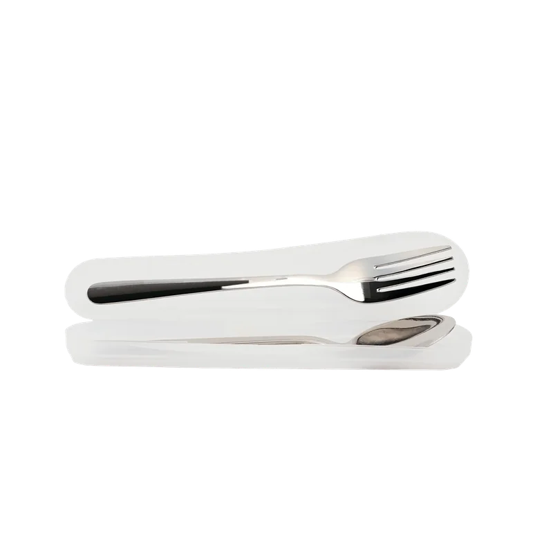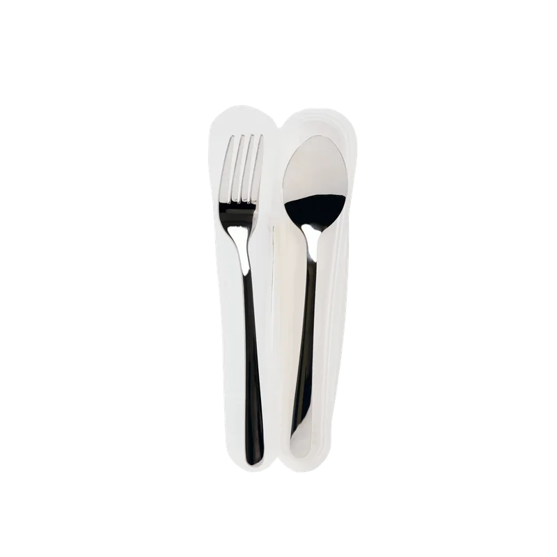 Das Set besteht aus einem Löffel und einer Gabel aus stabilem Edelstahl 201, die in einem schlanken, weißen Kunststoffbehälter sicher verstaut werden können. Das zurückhaltende Design in Weiß passt zu jedem Stil und bleibt dezent im Gepäck.