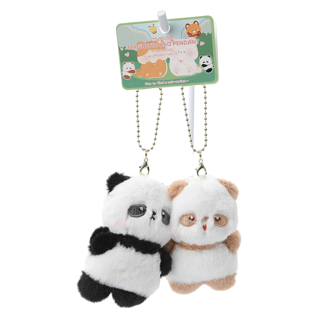 Dieses praktische Set besteht aus zwei weichen Plüsch-Anhängern im Panda-Design und ist sowohl für Kinder als auch Erwachsene geeignet. Die Plüschanhänger lassen sich einfach an Taschen, Rucksäcken oder Schlüsseln befestigen und setzen verspielte Akzente im Alltag.