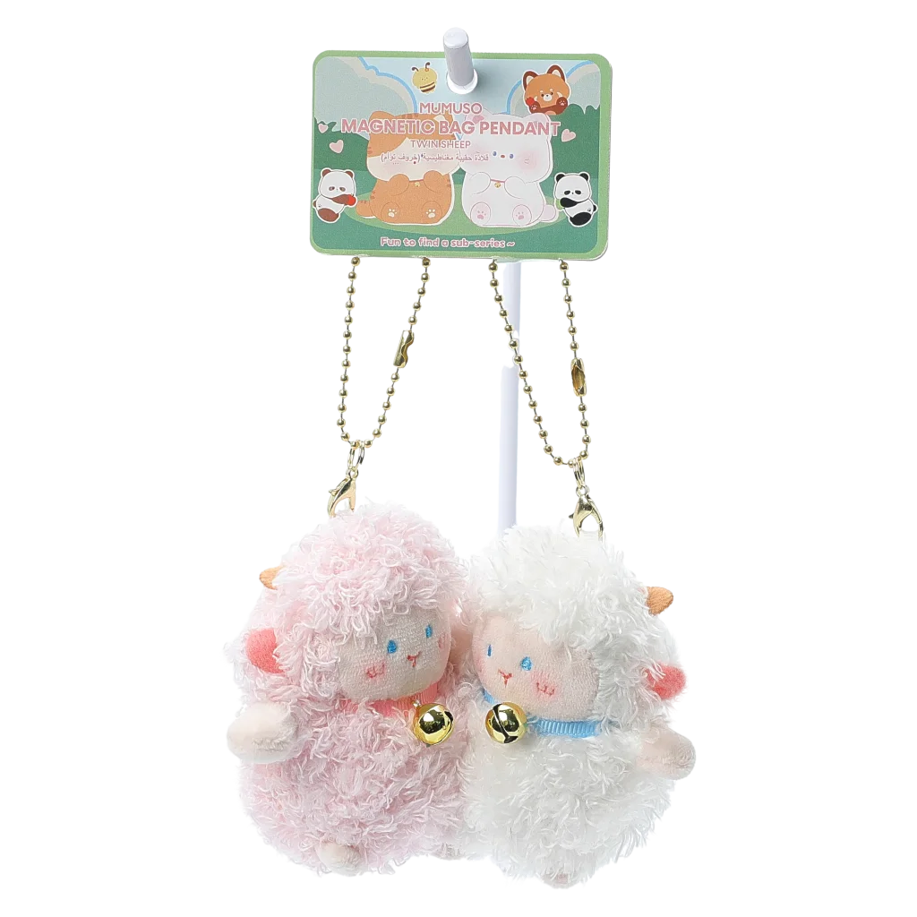 2-teiliges Plüsch-Anhänger-Set mit Schaf-Design, Magnetfunktion (Weiß/Rosa)