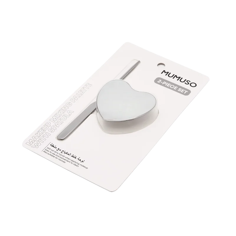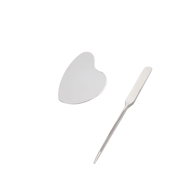 Das 2-teilige Edelstahl-Set mit Herzform-Palette und Spatel ist ideal zum professionellen Mischen von Make-up. Perfekt für alle, die ihre Foundation, Concealer oder Cremes hygienisch und präzise vorbereiten möchten. Enthält die Keywords Make-up Palette und Beauty Tool.