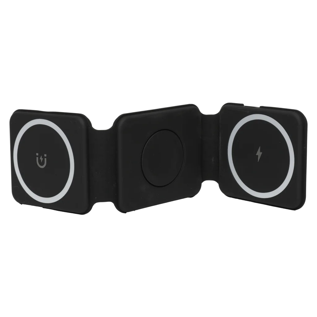 3-in-1 faltbare Wireless-Ladestation aus ABS und Silikon (Schwarz)
