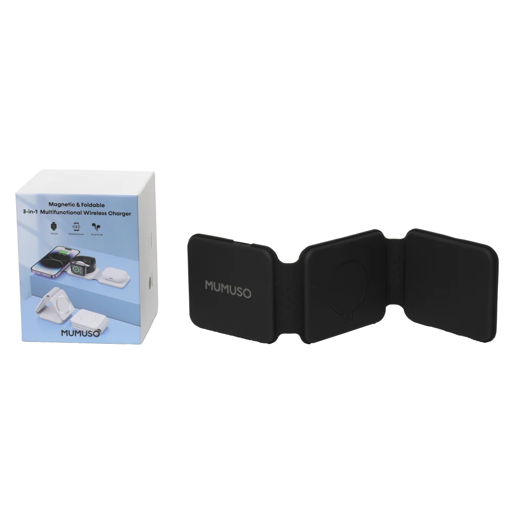 - 3-in-1 faltbare Wireless-Ladestation aus ABS und Silikon (Schwarz)
