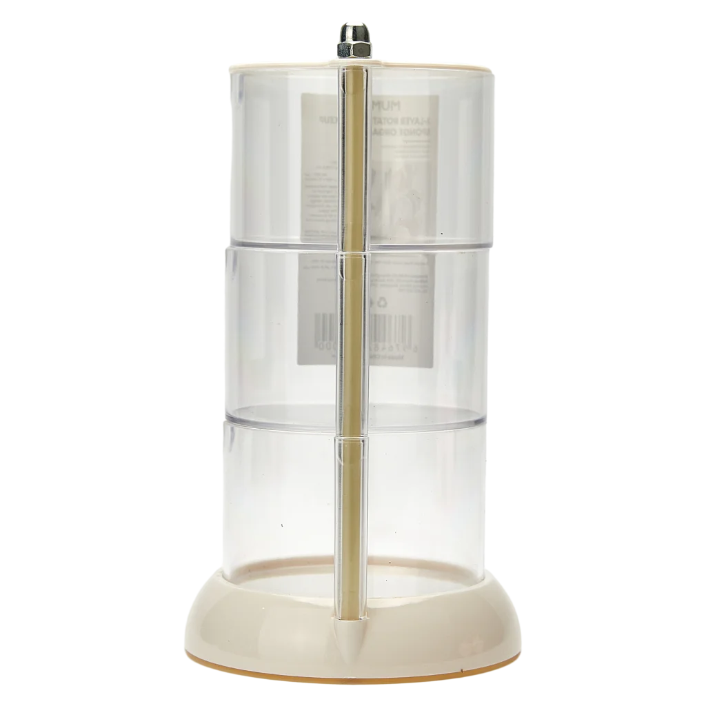 Drehbare Aufbewahrung: Die drei Ebenen lassen sich flexibel drehen, sodass Kosmetikschwämme, Wattestäbchen oder kleine Accessoires gut sortiert und schnell erreichbar sind.