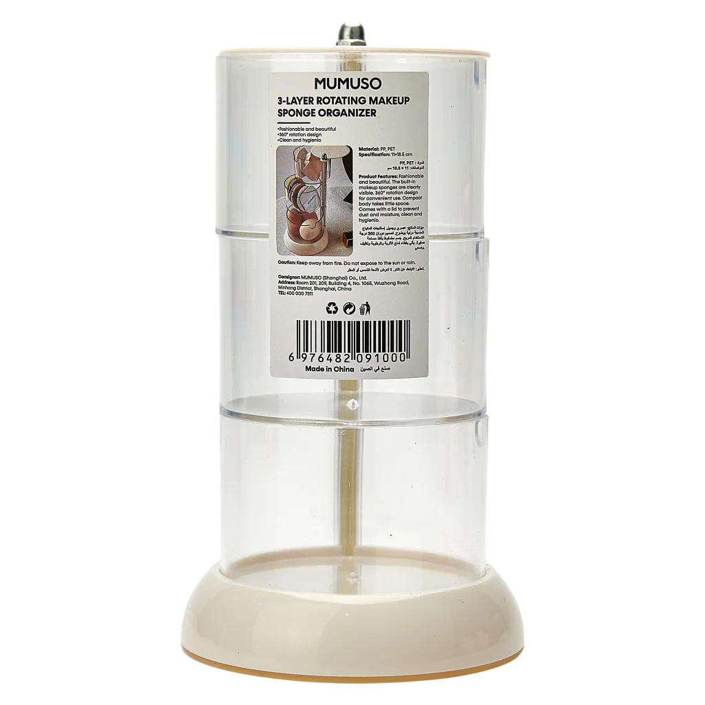 Mit diesem 3-lagigen drehbaren Make-up-Schwamm-Organizer haben Sie Ihre Kosmetikartikel jederzeit griffbereit. Die drehbare Funktion sorgt für schnellen Zugriff und eignet sich sowohl für das Badezimmer als auch für den Schminktisch oder Arbeitsplatz.