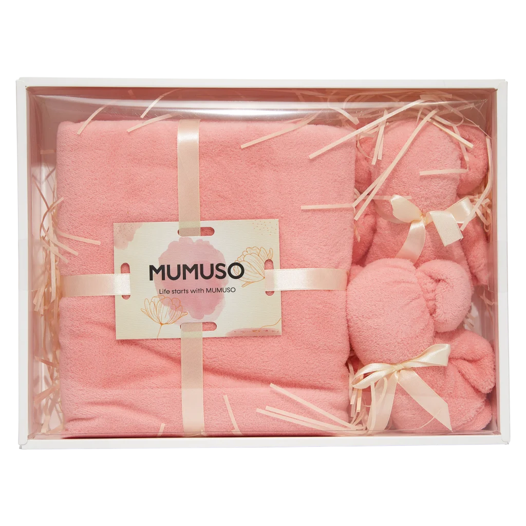 Dieses Geschenkset besteht aus einem flauschigen Badetuch und zwei Gesichtstüchern und eignet sich perfekt für zu Hause, auf Reisen oder als liebevolle Geschenkidee. Das farblich abgestimmte Bären-Design in Rosa sorgt für einen freundlichen Akzent im Badezimmer.