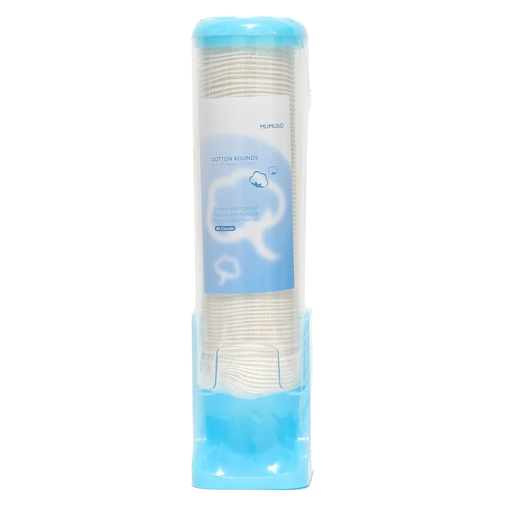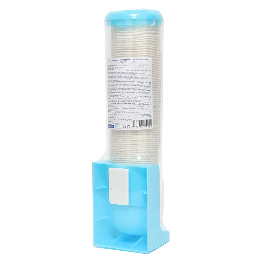 80 runde Wattepads mit Aufbewahrungshalter für Gesichtspflege (Weiß/Blau)