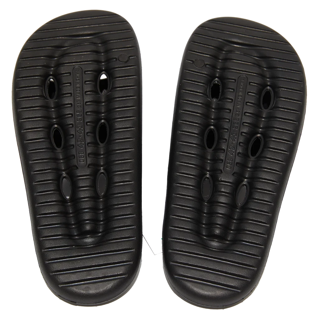 Gefertigt aus flexiblem EVA, sind die Slipper besonders leicht und beständig gegen Feuchtigkeit. Das klassisch offene Design in Schwarz wirkt zeitlos und sorgt für eine unkomplizierte Optik. Die strukturierte Sohle mit integrierten Drainageöffnungen unterstützt das schnelle Abtrocknen und erhöht den Tragekomfort.