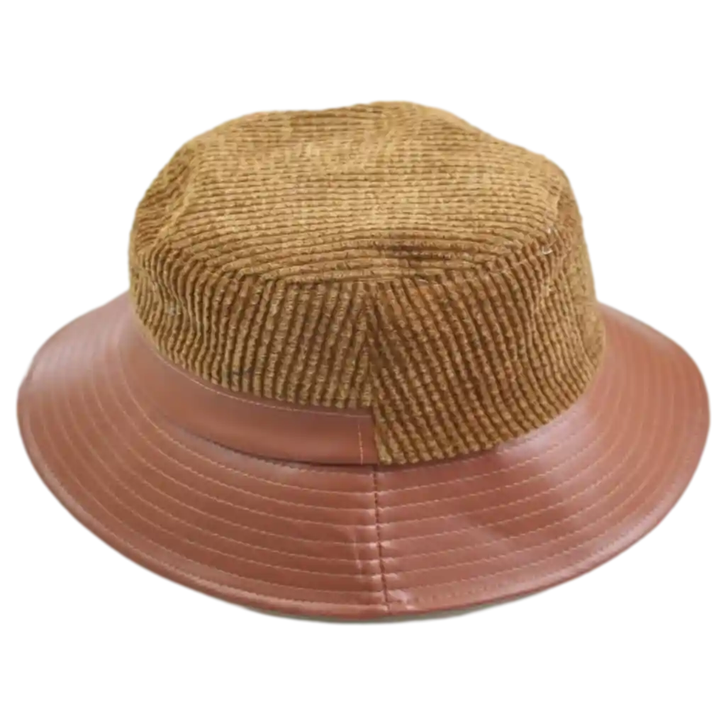 - Bucket Hat aus Kunstleder und Cord für Damen und Herren (Braun)