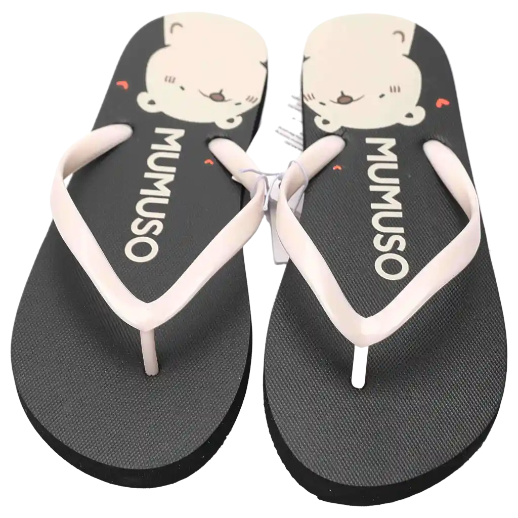 Damen-Zehentrenner in Schwarz mit süßem Bären-Design, ideal für den Sommer. Die leichte Sohle und flexiblen Riemen bieten angenehmen Tragekomfort. Perfekt für Strand, Pool oder Freizeit. Keywords: Flip Flops, Sommersandalen.