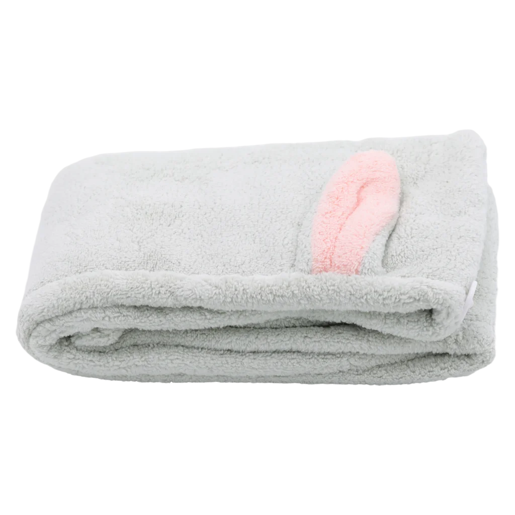 - Haar-Turban Handtuch aus Mikrofaser mit Hasenohren-Design (Grau/Rosa)