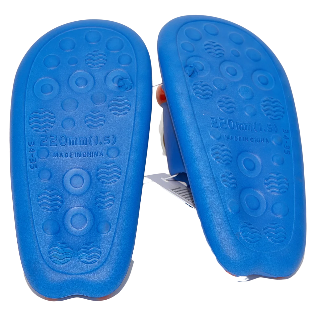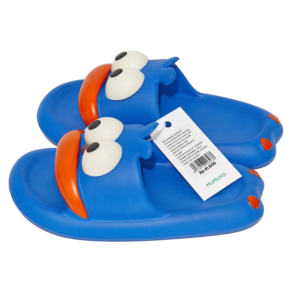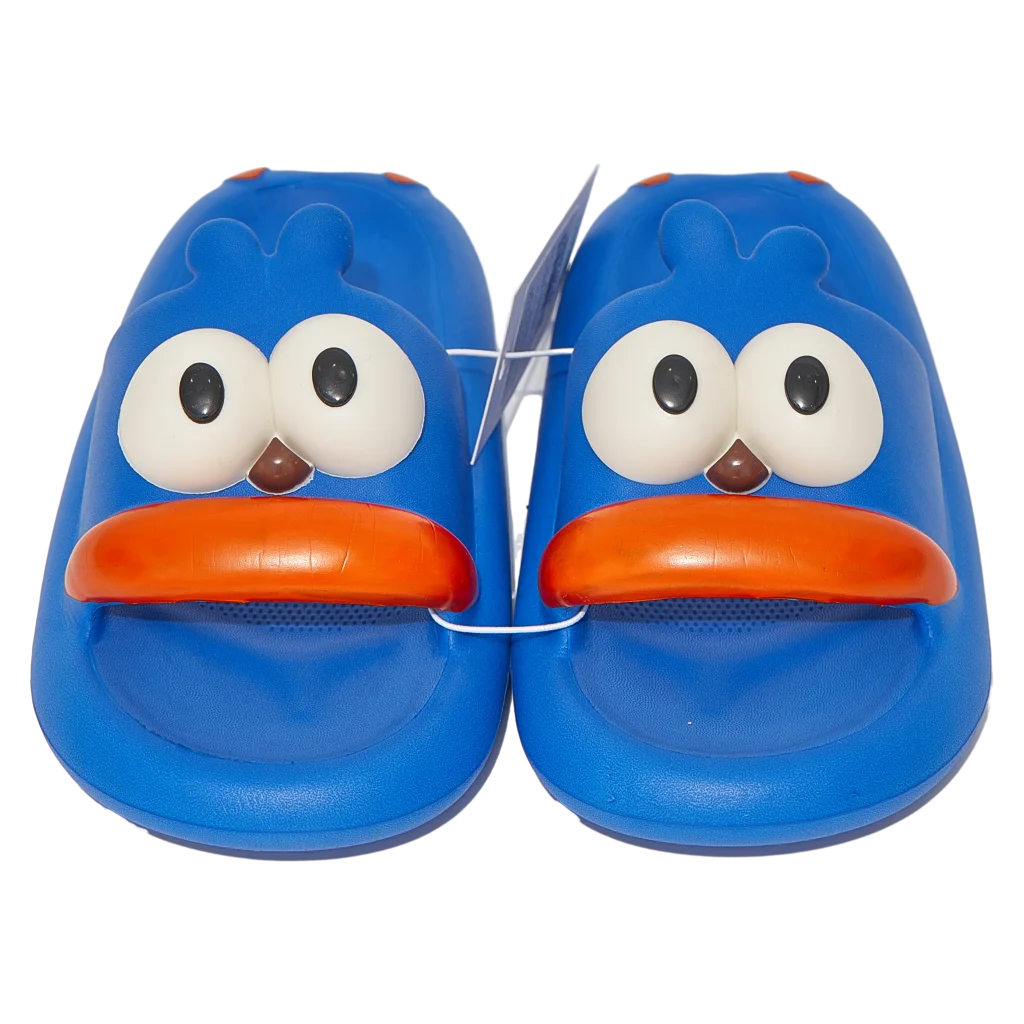 Gefertigt aus hochflexiblem EVA-Material, sitzen die Slipper angenehm und bieten ein auffälliges blau-orangenes Design mit großen 3D-Augen. Das pflegeleichte Material sorgt dafür, dass die Slipper schnell trocknen und lange formstabil bleiben.