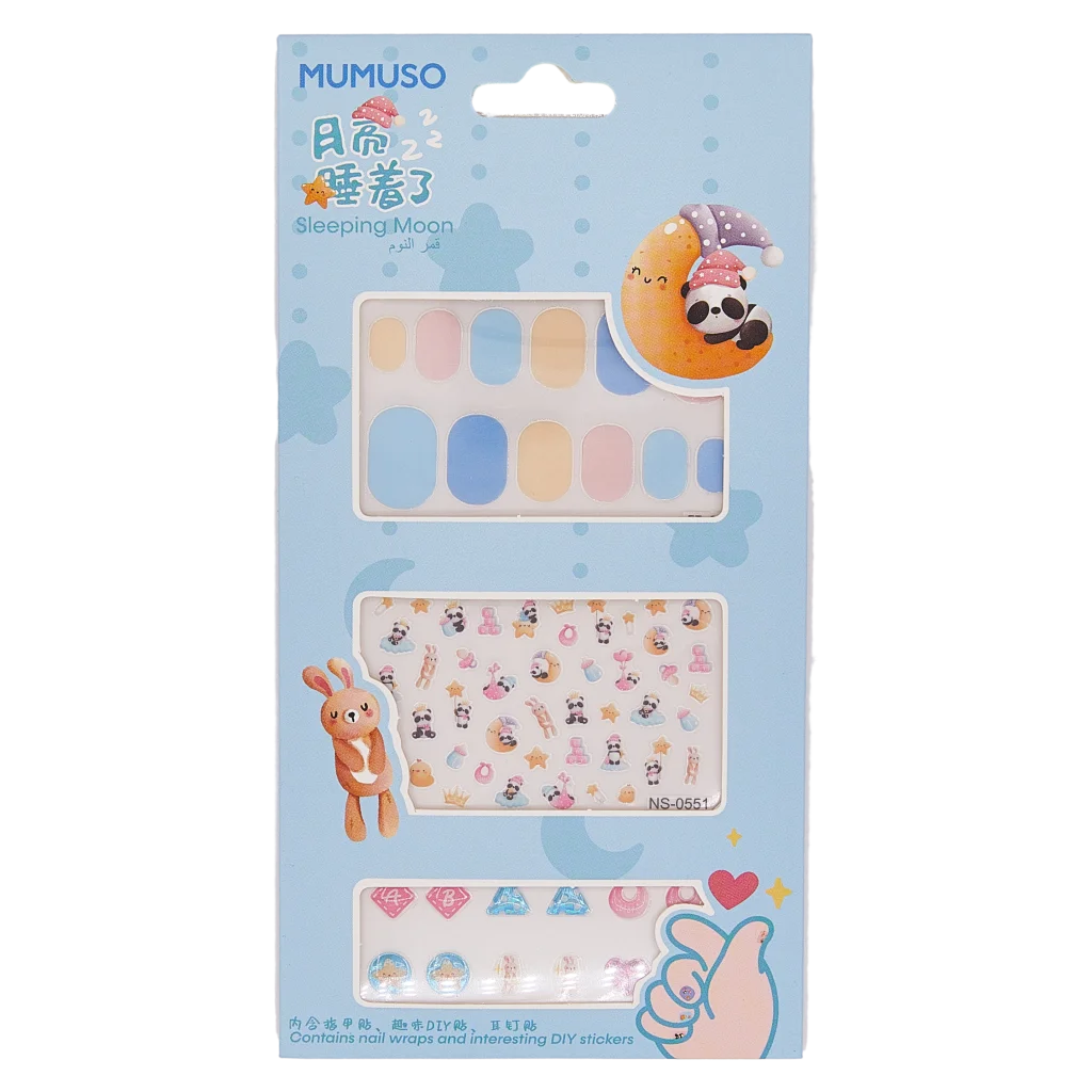 Die Sticker bestehen aus robustem ABS-Kunststoff und bieten unterschiedliche Designs im Schlafmond-Stil mit niedlichen Prints wie Sternen, Herzen und kleinen Tieren. Die dominierenden Farben sind sanfte Pastellnuancen wie Rosa, Blau und Mint – eine harmonische Auswahl für fantasievolle Looks.