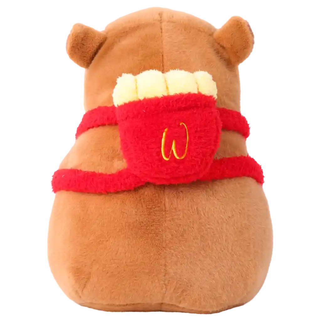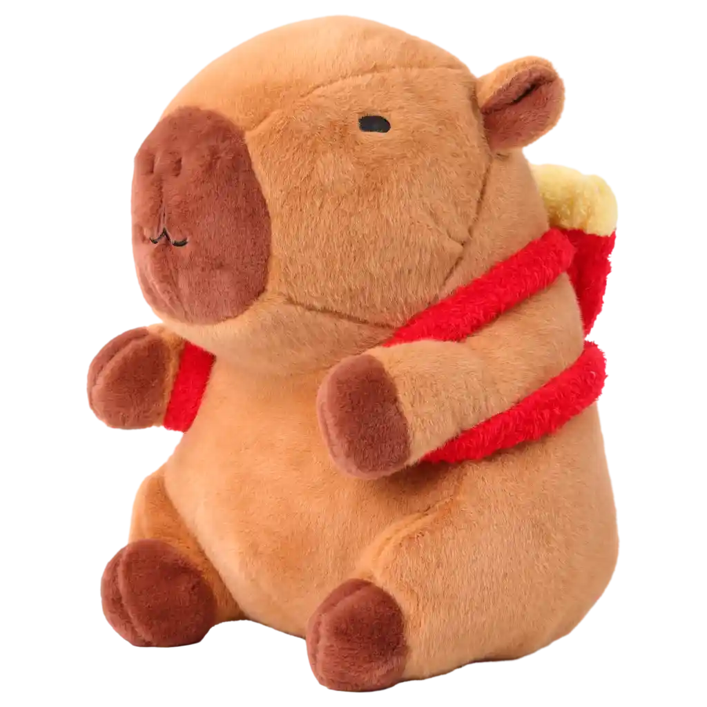 Der Plüsch-Capybara ist aus 100% Polyester gefertigt und fühlt sich besonders weich an. Das liebevoll gestaltete Rucksack-Detail im auffälligen Print verleiht dem Spielzeug einen einzigartigen Look in warmem Braun mit roten Akzenten.
