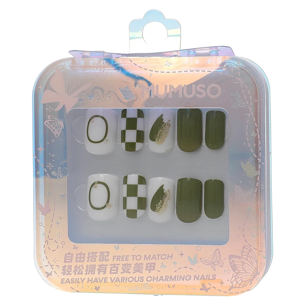 Das einzigartige Design kombiniert sanfte Grüntöne mit weißen Akzenten und trendigen Mustern. Die Nägel passen sich unterschiedlichen Fingerformen an und lassen sich mithilfe der beiliegenden Anleitung individuell kürzen und formen.