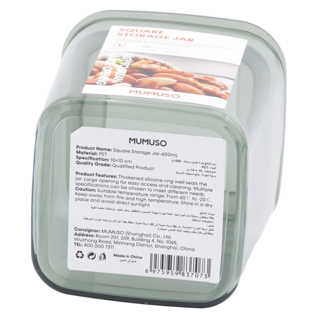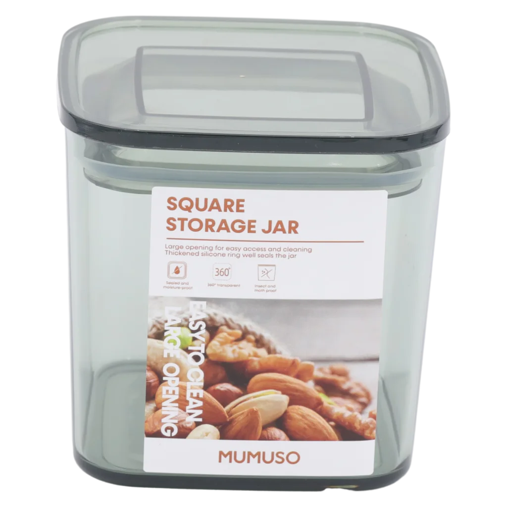- Quadratisches Vorratsglas aus Kunststoff, 600 ml (Grau)