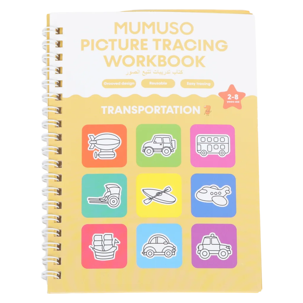 Förderung der Feinmotorik: Durch das Nachzeichnen von klassischen Transportmitteln wie Auto, Bus oder Flugzeug üben Kinder gezielt ihre Handbewegungen.