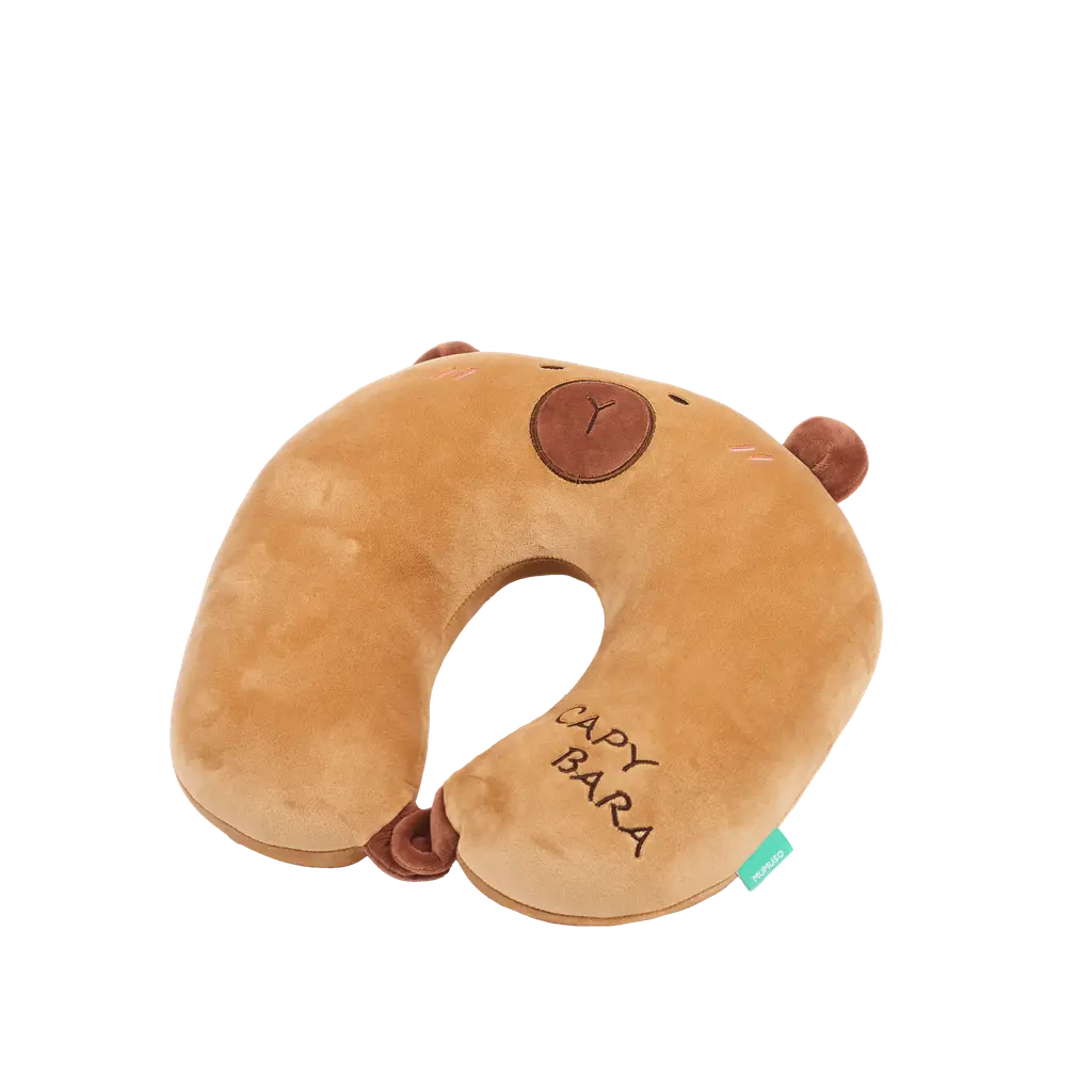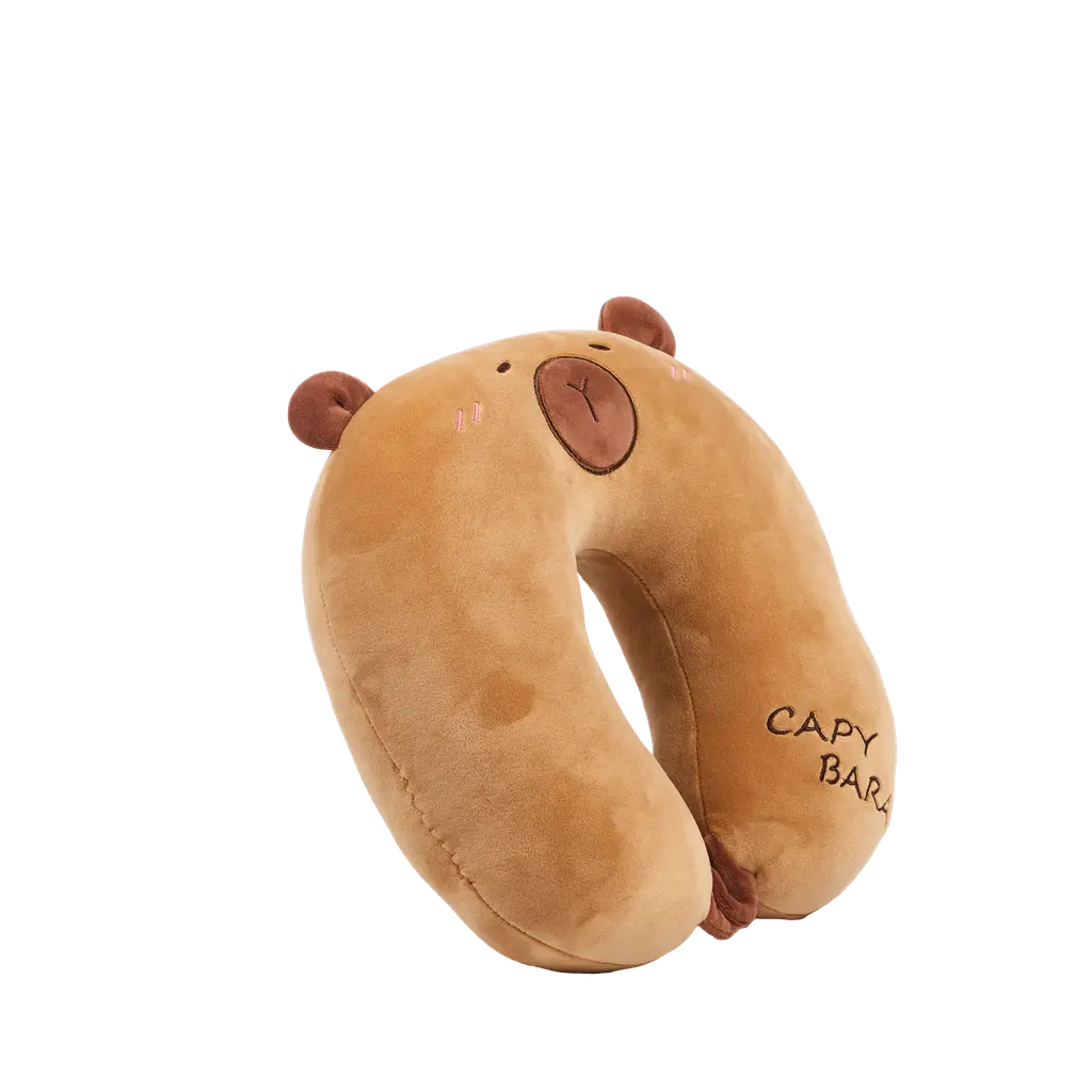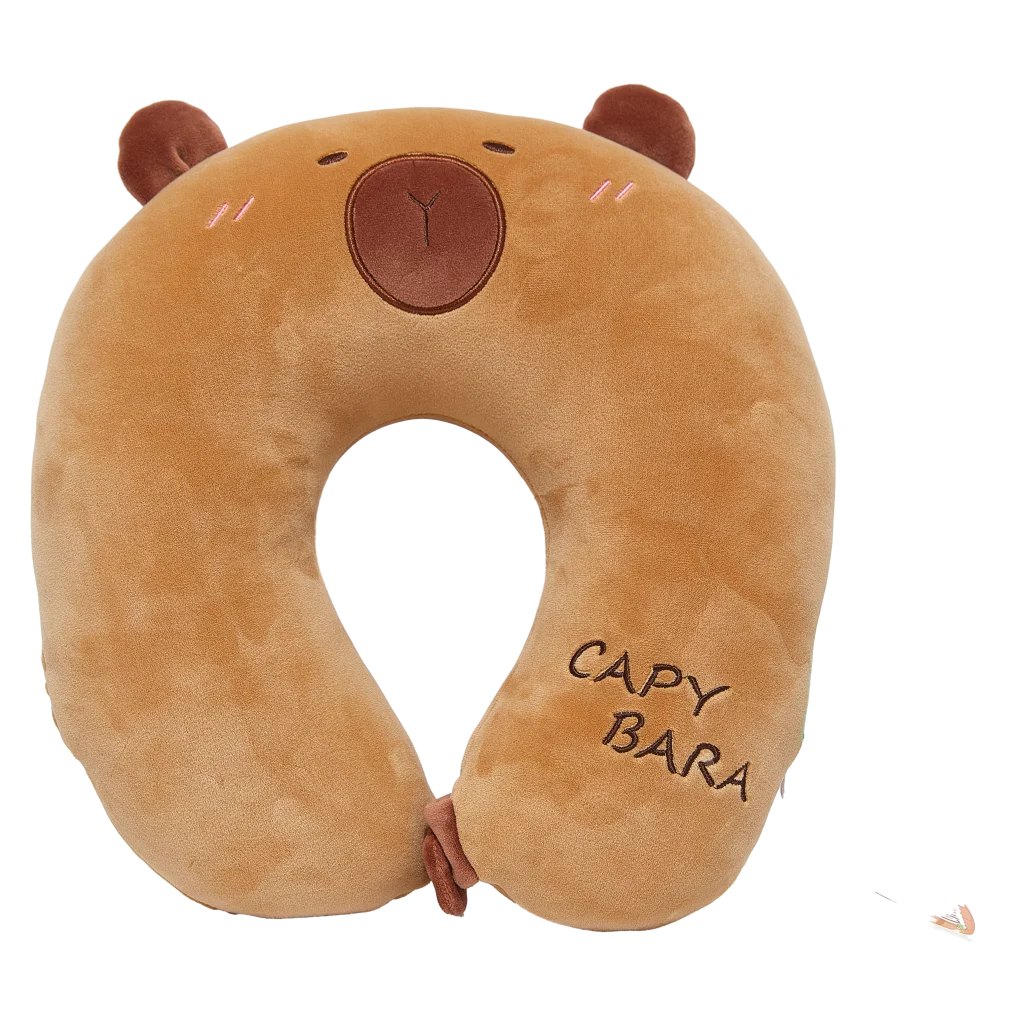 U-förmiges Nackenkissen aus Polyester mit Capybara-Design (Braun)