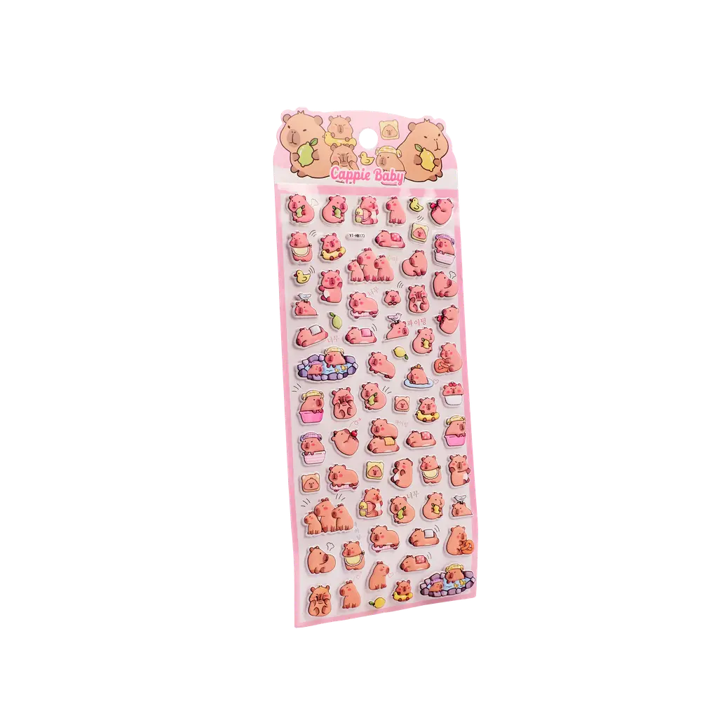 Puffy Sticker mit Capybara-Design bieten eine verspielte Verzierung für Notizbücher, Kalender oder Geschenke. Geeignet für Kinder und Erwachsene, sorgen diese Aufkleber für kreative Gestaltungsideen und dekorative Akzente im Alltag.