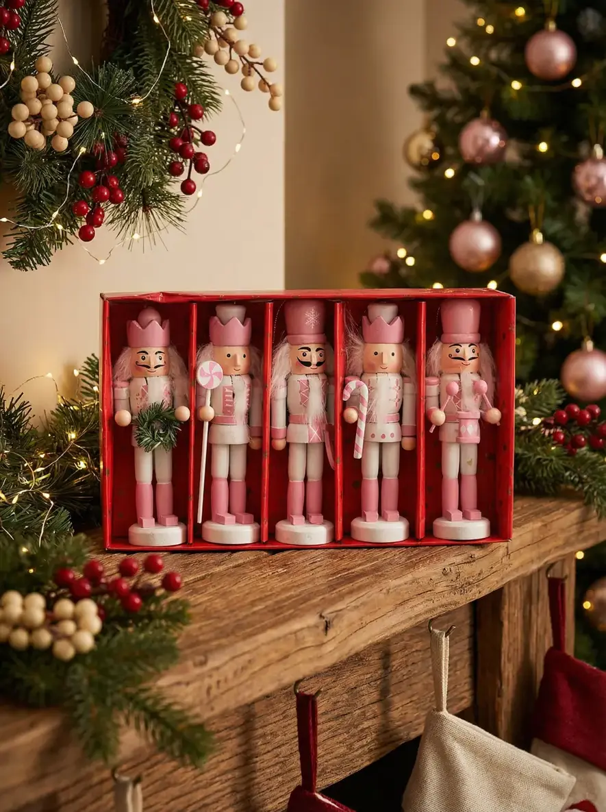 Das 5-teilige Rosa Nussknacker-Set mit einer Höhe von 12,5 cm ist ideal für die festliche Weihnachtsdekoration. Die charmanten Figuren bringen einen Hauch von Nostalgie und Freude in Ihr Zuhause.