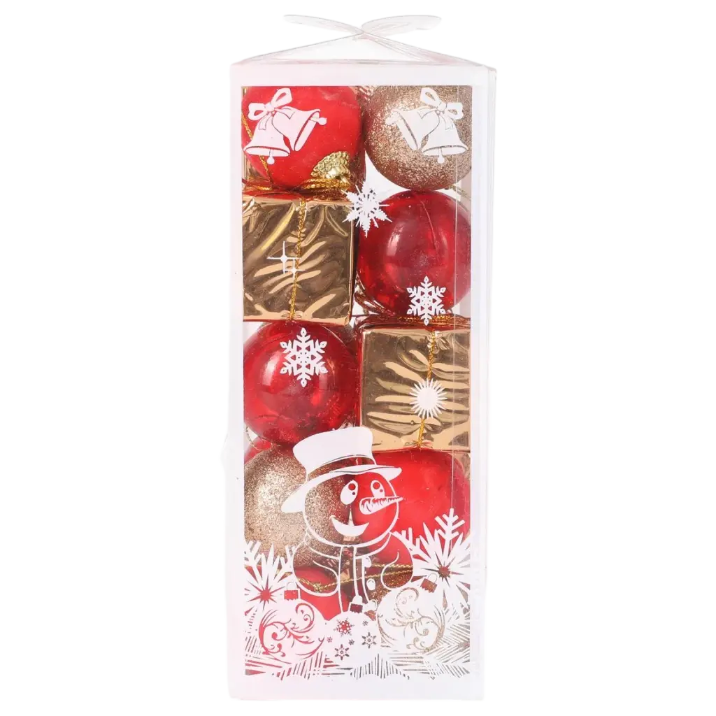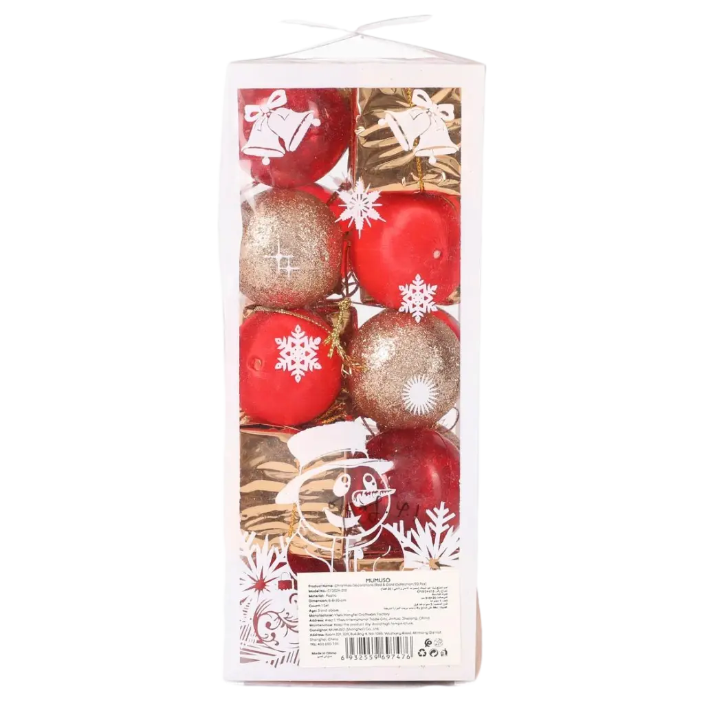 Die Kugeln sind in einem eleganten Rot und Gold gehalten und bringen einen Hauch von Luxus in Ihre Weihnachtsdekoration. Sie sind aus hochwertigem Material gefertigt, das sowohl langlebig als auch lichtreflektierend ist, um einen strahlenden Effekt zu erzielen.