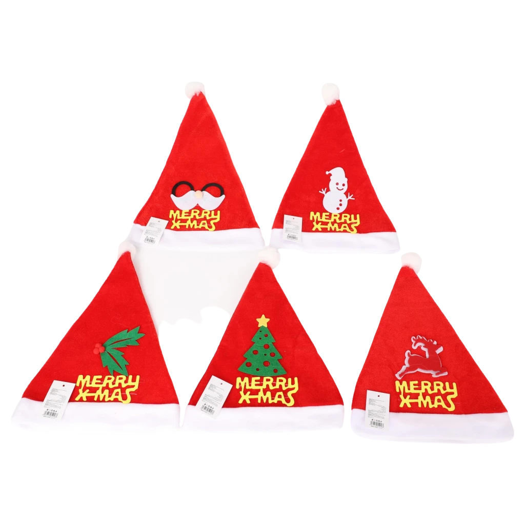 - Samtflausch-Applikations-Weihnachtsmütze (5 Designvarianten im Set)