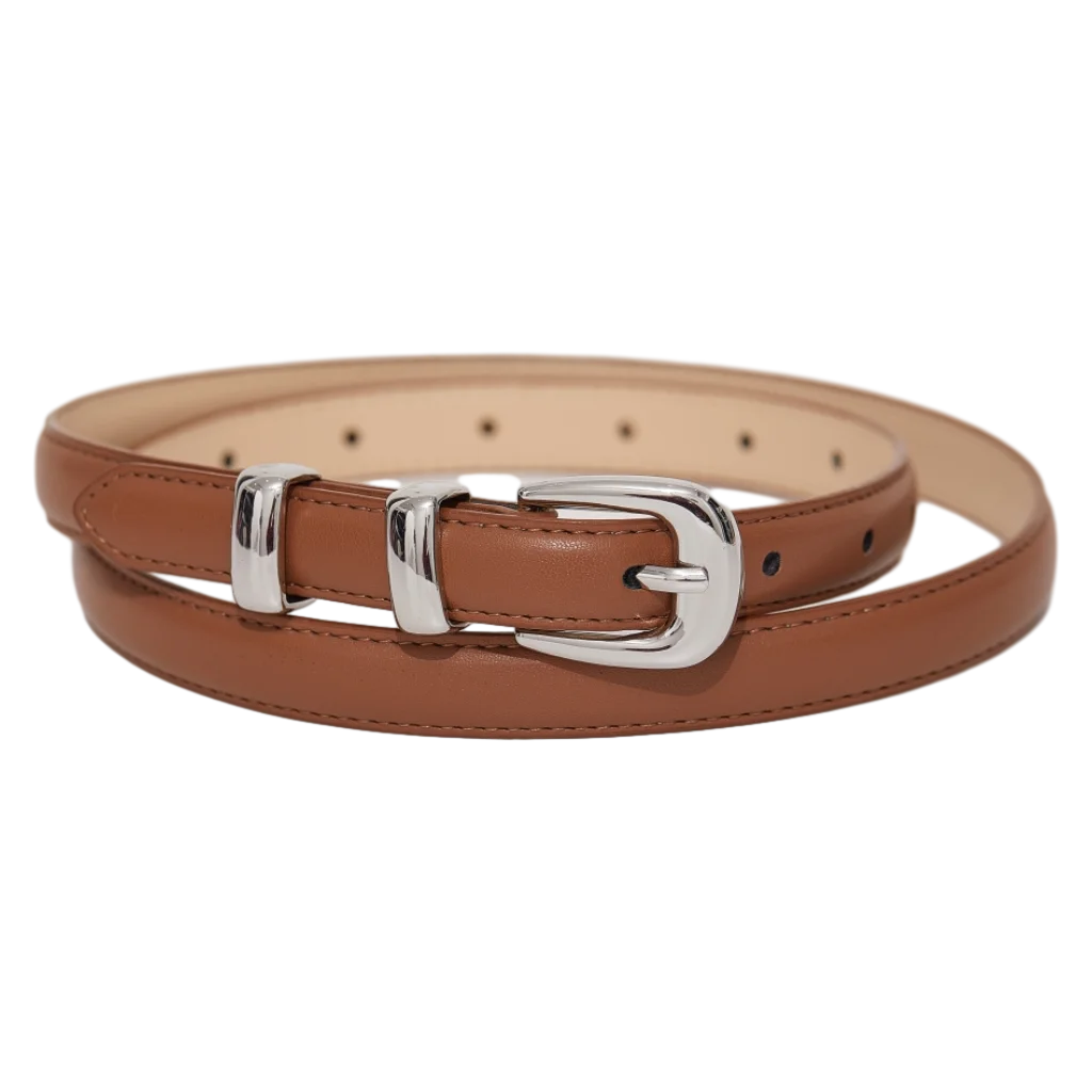 - Schmaler Damen Gürtel aus Leder mit Metallschnalle (Braun)