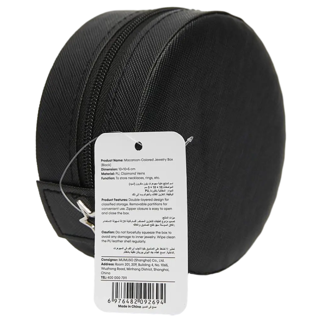 - Schmuckbox aus Kunstleder rund, kompakt (Schwarz)