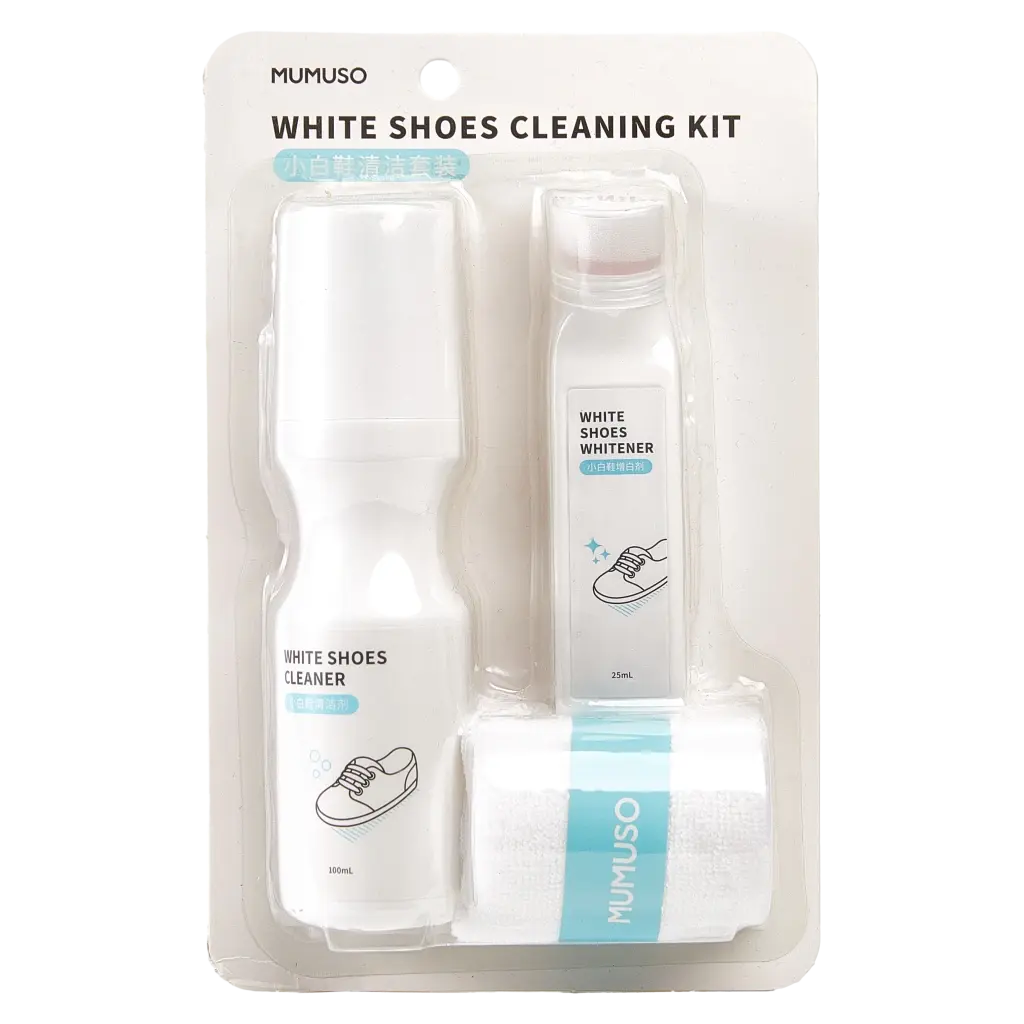 - Schuhreinigungskit für weiße Schuhe, Set mit Reiniger, Weißmacher und Mikrofaserhandtuch (Weiß)
