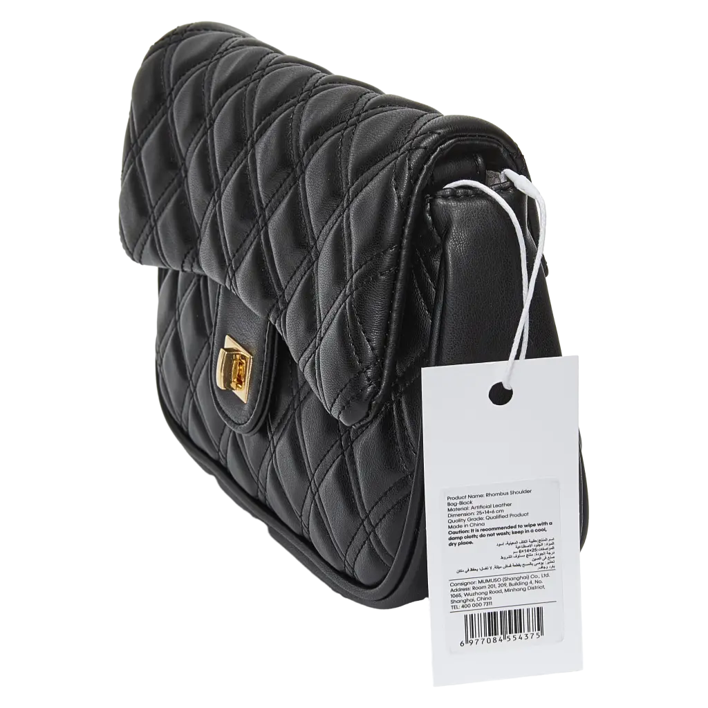 - Schultertasche aus Kunstleder mit Rautensteppung, 256 g (Schwarz)