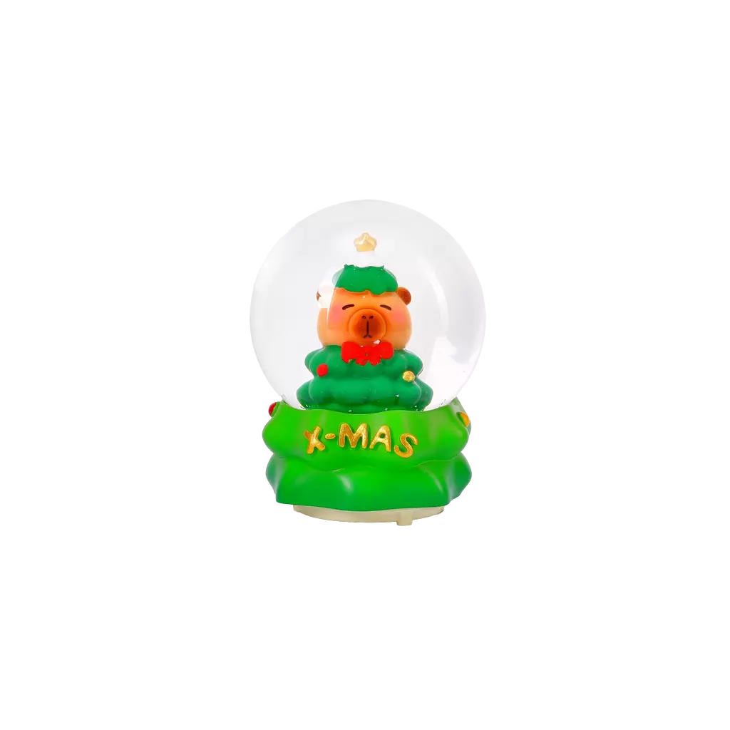 MUMUSO Schneekugel mit Capybara, grün – lebendige Dekoration für jedes Zuhause oder Büro.